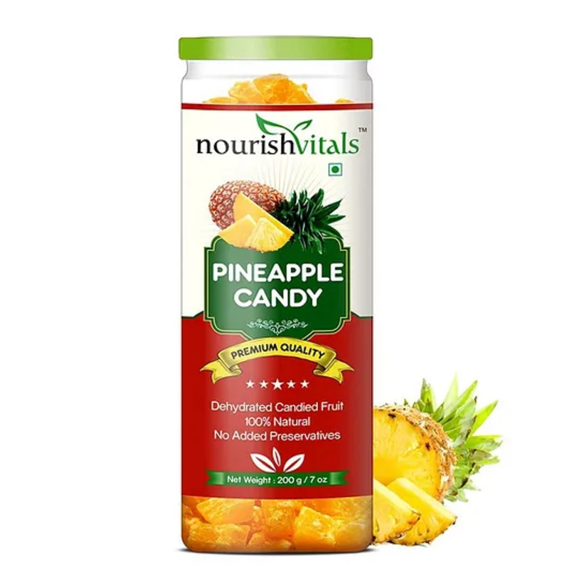 Pineapples are loved by all! NourishVitals Premium Quality Pineapple Dried Fruits are natural and contain no added preservatives or colours. We aim at offering our customers the freshest & best tasting products worldwide. We pack all our products hygienically to make sure that you get the very best with the best quality. Dried pineapples can work as immunity-boosters. Suppose that isn’t reason enough to eat dried pineapples. In that case, these are an excellent source of dietary fiber, thereby making dried pineapple chunks a healthy delight to munch on anywhere and anytime. They have an enticing sweet flavour and are the perfect size for snacking or baking.