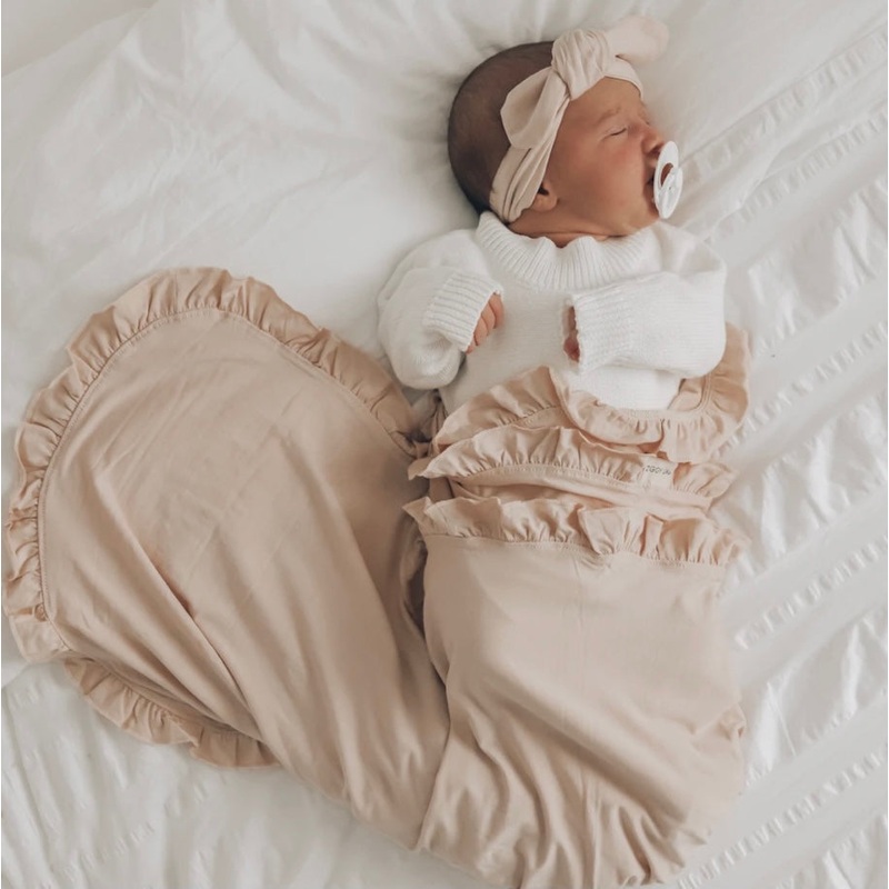 Multi use bamboo stretch swaddle |||Super soft and super stretchy. Beautiful frill detail to compliment our fringe swaddles