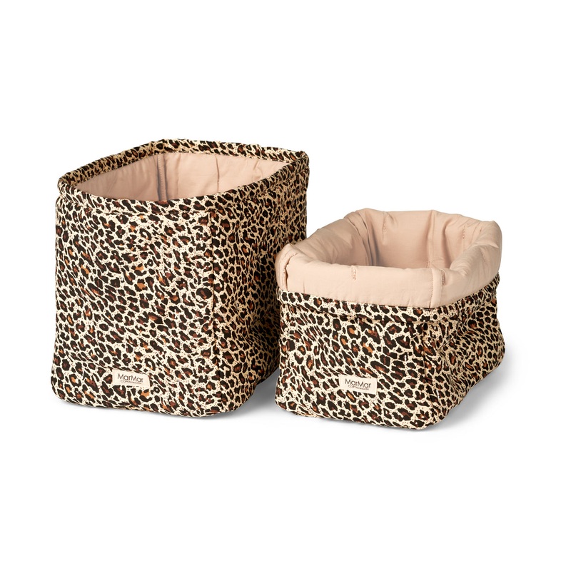 2 quilted baskets for changing supplies. The small one measures W:15cm x L:21cm x H:20cm. The large one measures W:17cm x L:25cm x H:20cm Standard 100 by OEKO-TEX certified Contains organic cotton