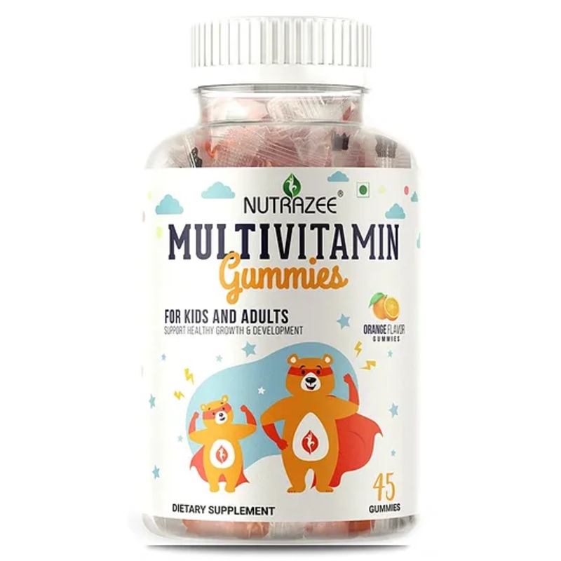 Nutrazee Multivitamin Gummies are ideal gummies for kids, teenagers, and adults an effective and great-tasting way to help fulfill nutritional gaps in your diet. Nutrazee MultivitaminSupplement Gummies are uniquely delicious, chewable vitamins, offering a wide range of nutrients in easy-to-chew, natural orange flavor gummy vitamins in bear shape. Easy to take alternative to pills or syrup. Help Fill Nutritional Gaps. Antioxidant. Supports Strong & Healthy Bones. Maintain a Healthy Immune System. Sustains Energy. Support Eyes. Maintains a Healthy Brain. An excellent source of nutrients, including vitamins A, C, D, E, B3, B6, B12, biotin, iodine, inositol, and folic acid.