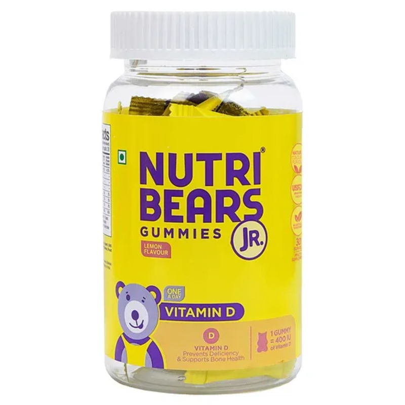 • Natural, Gelatin-Free FormulaSpecificationsBrand – NutriBearsType – GummyAge – 5 Years+Product Description- L 7 x B 7 x H 13.7 cmQuantity – 30 gmProduct DescriptionNutriBears Vitamin D Gummies is a smart choice for kids with special dietary needs our kid’s gummy vitamins taste great and provides 100% of RDA with 400 IU of Vitamin D per serving. Ideal for keeping boys and girls healthy and happy.Items Included in the Package30 Gummy Vitamins