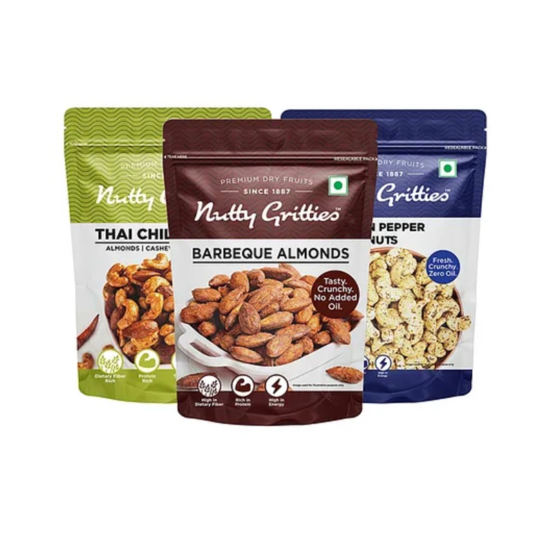 Nutty Gritties Barbeque Almonds Thai Chilli Blend & Pepper Cashews Pack of 3 – 600 gm Total