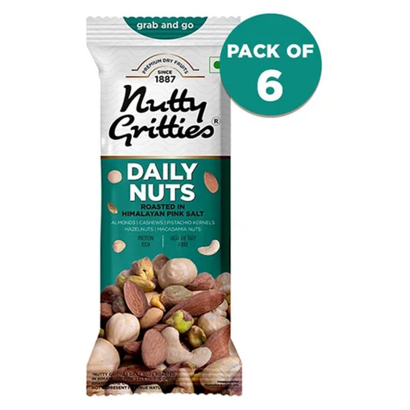 CONTAINS 6 packs of Daily Nut - Roasted & Salted, 35g each. Net weight 210gINGREDIENTS Roasted & Salted Almonds, Cashews, Macadamias, Hazelnuts, Pista KernelsGOES WITH YOU Skipping meals? Work\study hunger pangs? Midday\midnight snacking? Travelling? Netfl