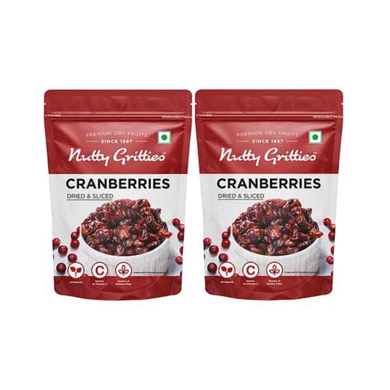 High in dietary fiber offering 5.7 g in 100 g cranberriesHelps to maintain a healthy digestive systemRich in antioxidants and a great source of vitamin CSweet, tangy and delicious in flavorSpecificationsBrand - Nutty GrittiesType - Dried CranberriesAge - 3