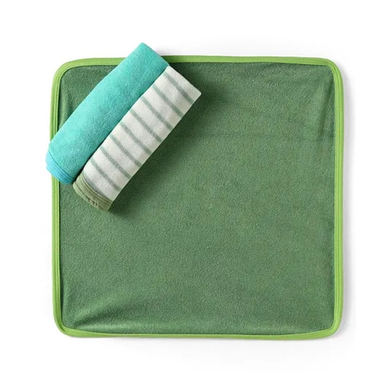 OHMS Terry Knit Wash Cloth Pack of 3 L 24 x B 22 cm – Green Blue & White
