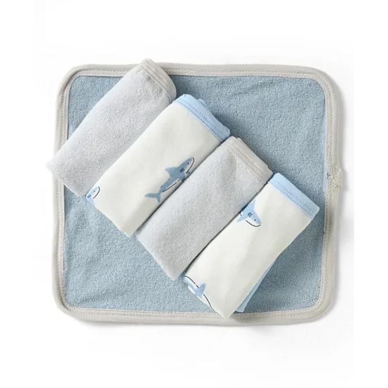 OHMS Terry Knit Wash Cloth with Shark Print Pack of 5 L 24 x B 22 cm – Light Blue & White