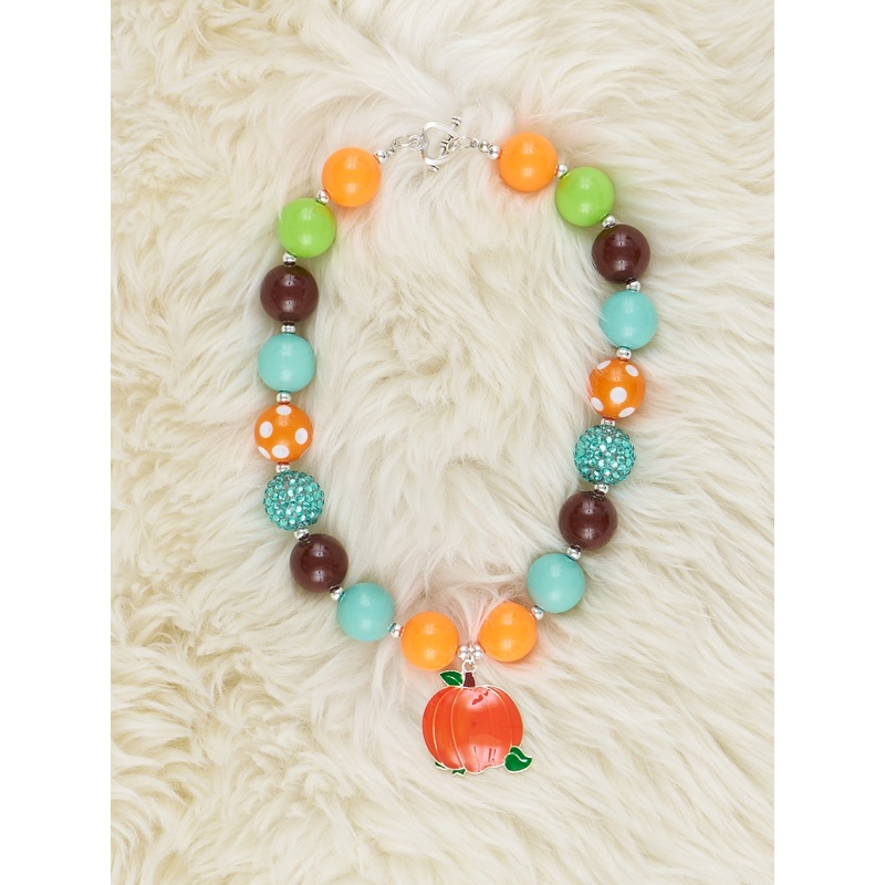 Be the first to review “Orange & Teal Sparkle Pumpkin Bubblegum Necklace”