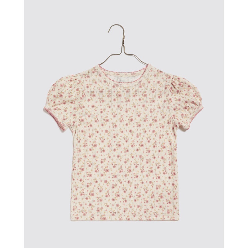 A lovely, simple and comfortable everyday t-shirt. Made from lovely, soft, organic, pointelle jersey fabric. Perfect with any of our bloomers, shorts or skirts. Smaller sizes have a press-stud neck opening.Key Features:100% organic cotton fabricBespoke flo
