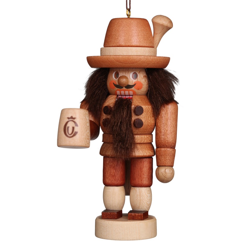Hanging ornament - bavarian nutcracker holding his mug.Made in Germany4"H x 2"W x 2.25"D