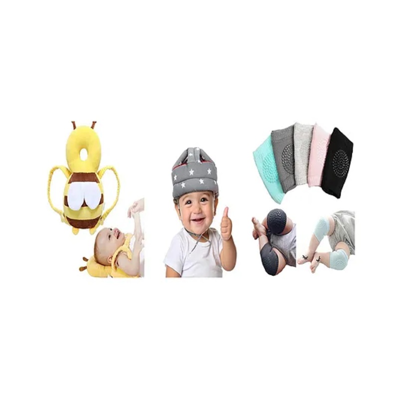 Ortis Baby safety Combo of Baby Helmet and Baby Head Protector Cushion Backpack and kneepad (Color And Design May Vary)