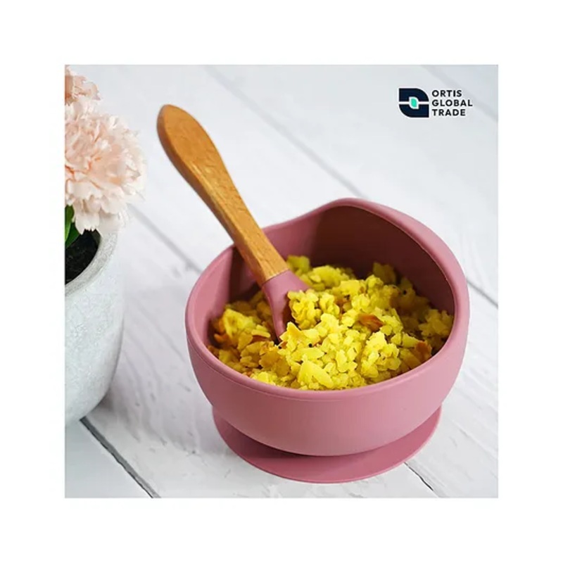 OCAL33215261422Ortis Silicone Small Suction Bowl Set with Spoon 2 Pc Feeding Set – Pink
