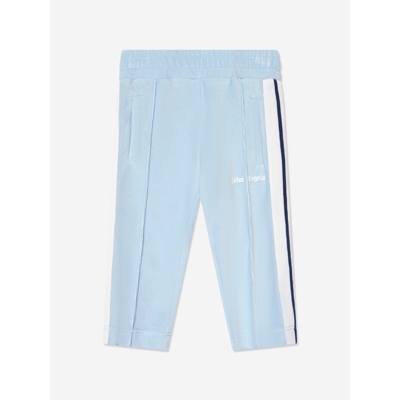 Introducing the Baby Boys Logo Track Pants in Blue by Palm Angels a high-end streetwear staple for your child's wardrobe. Iconic Quality: Designed and made in Italy, these pants embody top-tier craftsmanship for lasting endurance and premium feel. Modern D