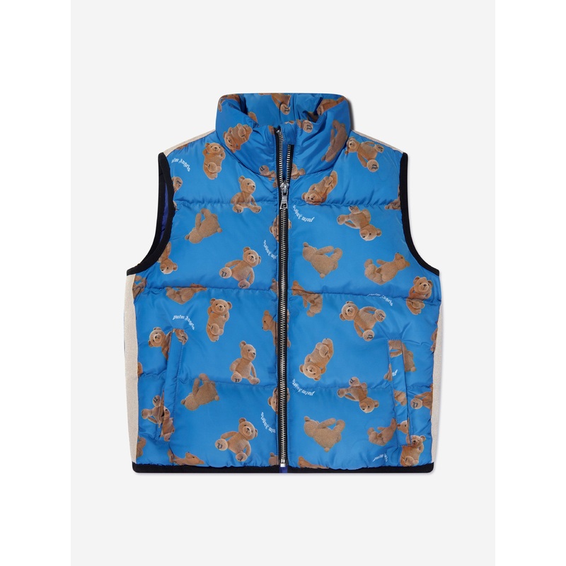 Palm Angels Boys AOP PA Bears Track Gilet in Blue