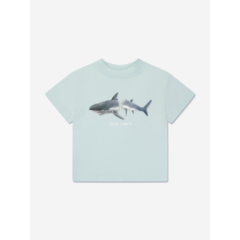 Introducing the Boys Shark T-Shirt in Blue by Palm Angels, an essential addition to your boy's casual wardrobe. Here are the key points that make this product unique: Iconic Design: This T-shirt features a vibrant shark print that adds a fun and stylish to