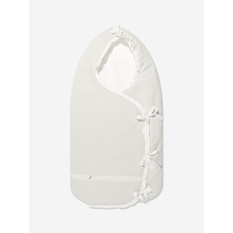 Paz Rodriguez depict incorporate high quality craftsmanship into their adorable abstracts. This unisex newborn natural cream nest captures the label's preference for sweet timeless designs. Made in refined material with ruffled trims, lace detailing, bows
