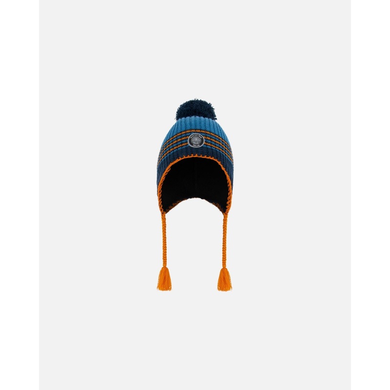 With earflaps for added warmth, our Peruvian Knit Hat Blue and Orange coordinates easily with a variety of our winter coats and snowsuits. Made from a blend of soft yarns and detailed with a cozy lining, this hat features ear flaps for added coverage, a fluffy pompom on top, and braided tassels that add texture and charm.