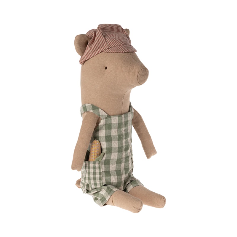 Oink Oink – say hello to the sweetest pig. This pig comes in overalls and can sit on its own. Create your own pig family by adding more family members from the collection.