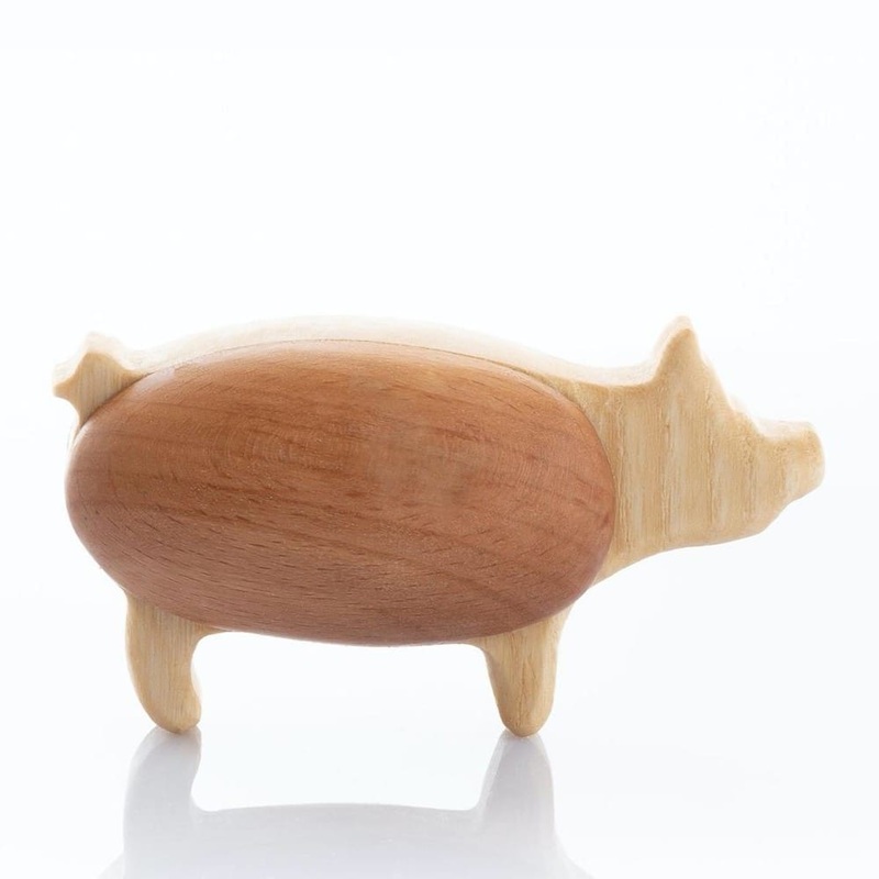 The Mercikos designer and craftsman finds his inspiration from the wooden toys of Scandinavian designers and Waldorf animals. He adds contrast with two different types of wood, preserving the natural color of the material and highlighting the forms of the animal with more rounded shapes. This eco-friendly wooden toy is crafted using sustainably harvested hardwood, organic olive oil, and beeswax. The lighter wood is white ash and darker wood is beech. This Waldorf toy is carefully crafted, rounded on all edges, and sanded silky smooth to appeal to your childs senses. Because of the natural material, each animal is unique and will vary slightly due to the color and grain of the wood.