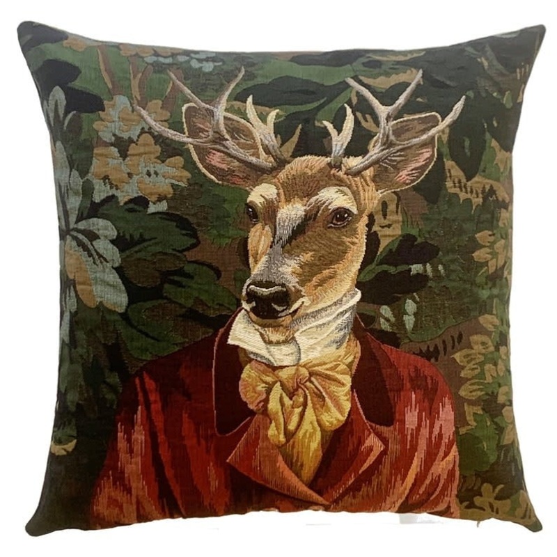 The fabric of this pillow cover is woven on jacquard looms using cutting edge weaving technology in Belgium, which has been the cradle of tapestry weaving since the 15th century. The jacquard technology allows us to reproduce the finest details in the most vibrant colours and colour shades. All pillow covers are hand finished in our ateliers. – Size : 18×18 – Lined with a plain beige cotton fabric – Closes with zipper – Composition : 86% cotton 14% mixed yarns – Dry clean only