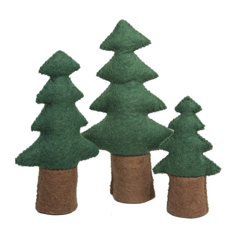 Promote imaginative play with these Felt Pine Trees. Includes 3 pieces. Made in Nepal.