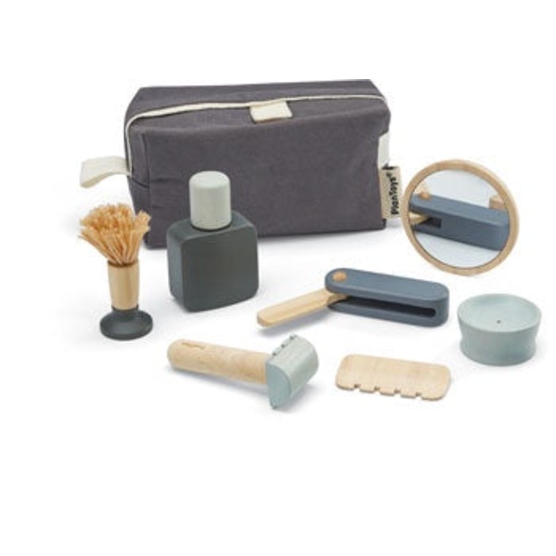Wooden Shaving Set. Spice up your morning routine with the PlanToys Shave Set!Complete with a carrying bag, comb, knife, trimmer, product jar and brush, razor, mirror and aftershave bottle, this toy is the perfect addition to any childs pretend-play collec