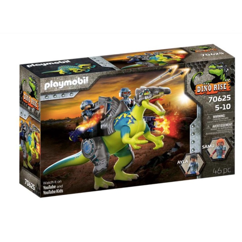 As part of the Dino Rise collection, the spinosaurus can be combined with other Playmobil Dino Rise figures and toys to create complex stories that feed your child’s imagination. Spinosaurus can be accessorised with the included armour, and children can use the Samu and Ayla figures with spinosaurus or supplement the game with additional figures from other Playmobil playsets.