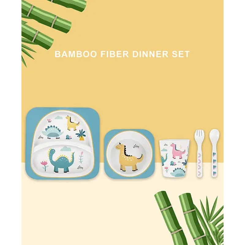 Polka Tots Eco-Friendly 5-Piece Bamboo Fiber Feeding Set For Babies, Toddlers, & Kids Includes Plate, Bowl, Glass, Spoon, Fork Dino Design | Kids Tableware & Crockery Set