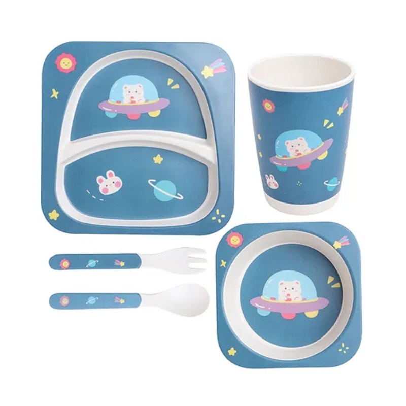 Bamboo fiber material is Eco-friendly, Safe & HealthyThis fun kids dinner set features a durable bamboo sectioned dinner plateStrong and flexibleFull set, includes child's plate, bowl, cup, spoon & forkCute attractive designsSpecificationsBrand - Polka Tot