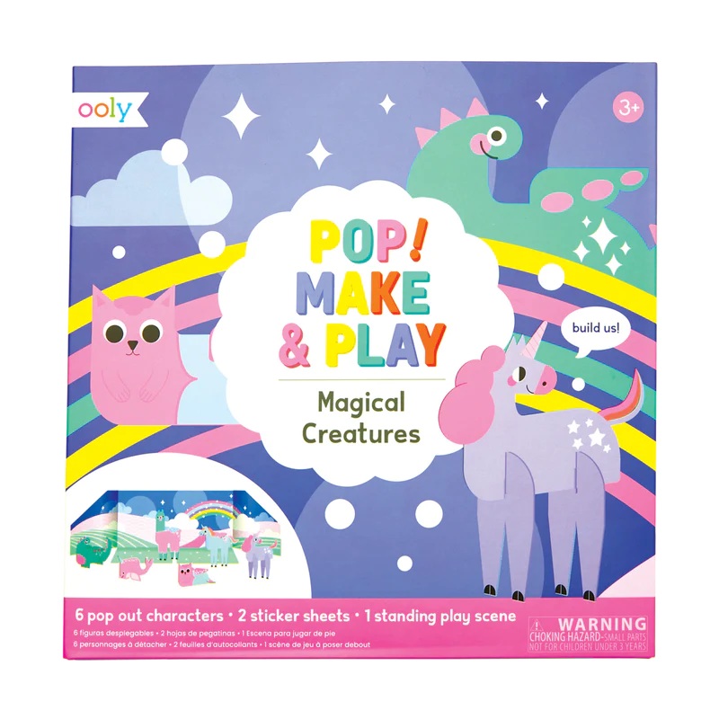 Your little kiddo gets to decide whats on the minds of these magical creatures in OOLYs adorable pop out play set. This whimsical world includes six pop out characters, two sticker sheets, and one standing play scene. The pop out play set inspires an afternoon of imaginative play.