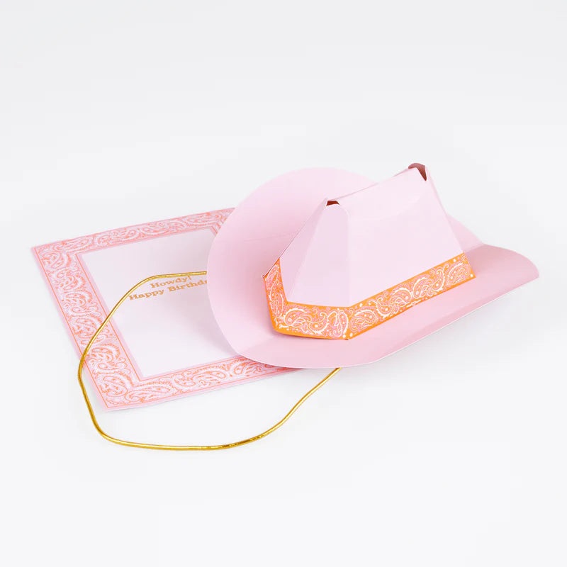 Yeehaw! Send wonderful western birthday wishes to a special someone with this clever card. It's not every birthday you receive a card that's also a fun pink hat, perfect for wannabe cowboys and cowgirls! It comes with an insert for you to write your messag