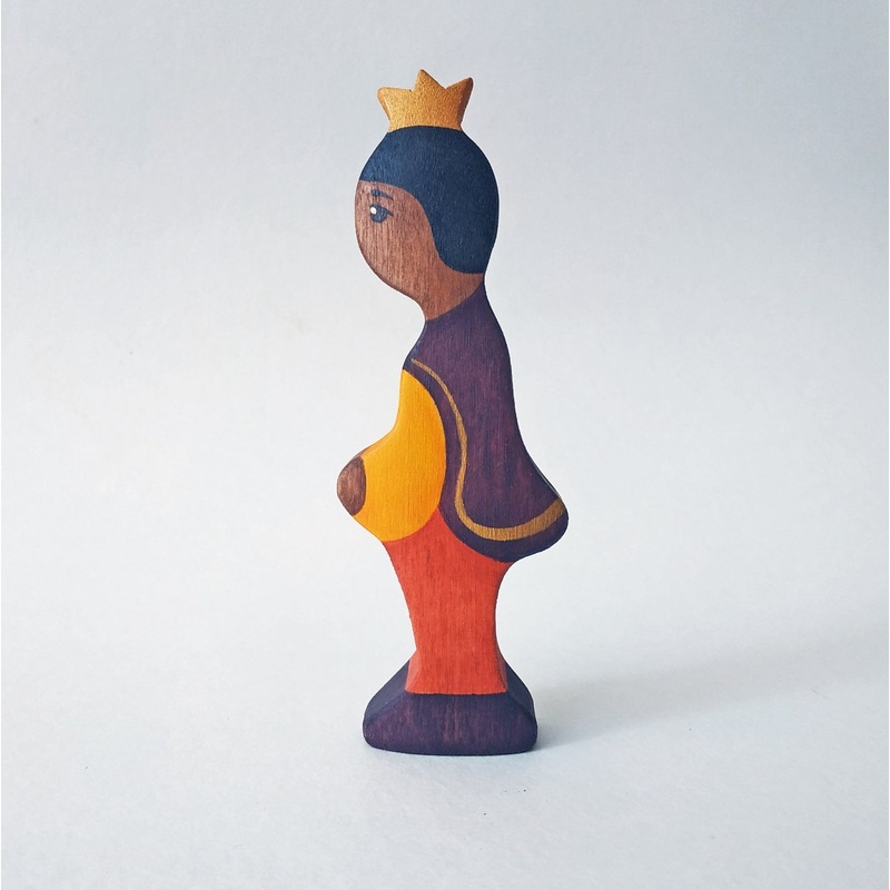 This Medieval Fairytale Prince figurine is crafted from solid birch wood, colored with water-based paint, and coated with non-toxic acrylic lacker. He is perfect for small world play, sensory bins, the sandbox, or as room decor. The water-based paint allows some wood texture to be visible. Colors and textures may vary slightly from photos since each product is made by hand.