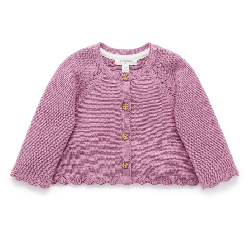 Purebaby Scalloped Cardigan – Lavender Melange