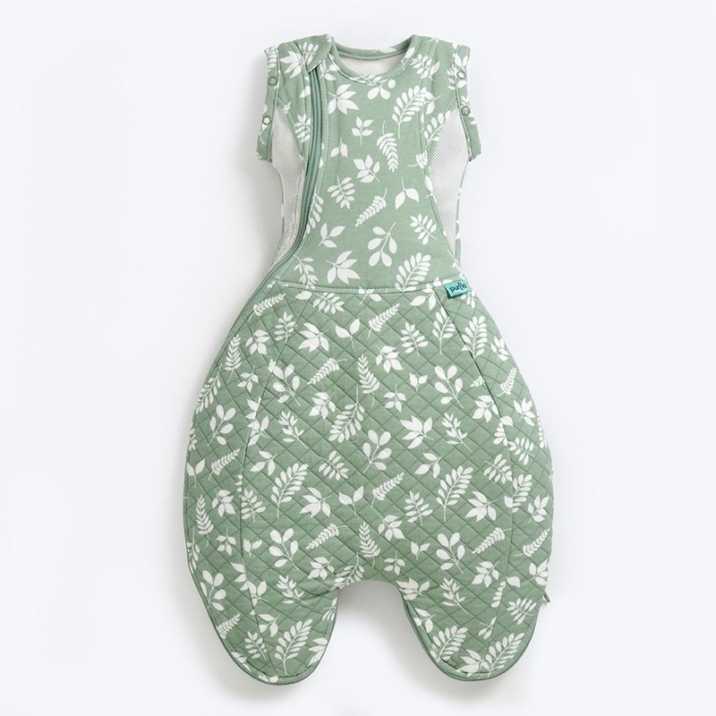 The Purflo All Seasons Swaddle To Sleep Bag 2.5 TOG in Fern has been developed to offer parents a safer, healthier bedding solution for newborns and young infants. It features unique breathable panels and the option to swaddle arms in or out. The Swaddle T