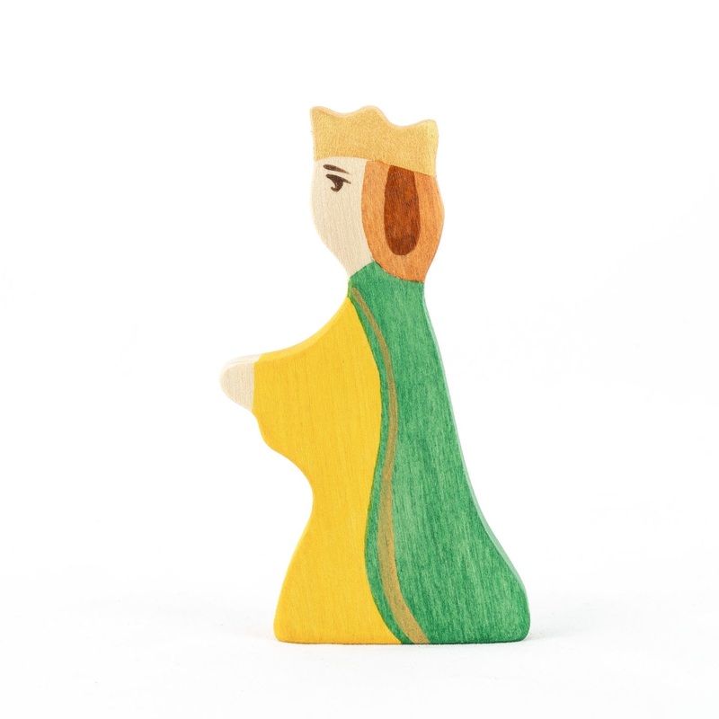 This Medieval Fairytale Queen figurine is crafted from solid birch wood, colored with water-based paint, and coated with non-toxic acrylic lacker. She is perfect for small world play, sensory bins, the sandbox, or as room decor. The water-based paint allow