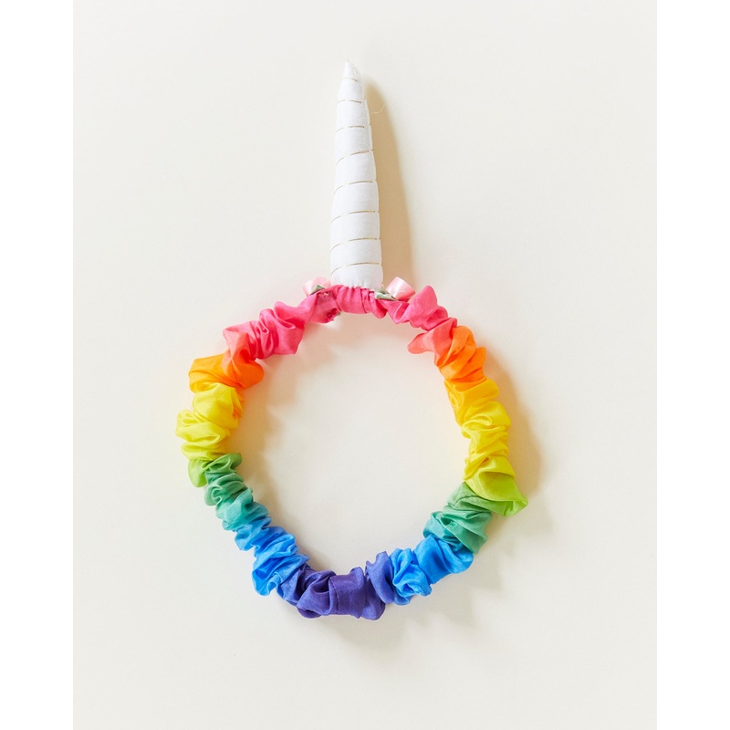This magical Rainbow Unicorn Horn is too adorable! Cut from soft silk with a large horn hand-sewnin the front. This simple costume makes the perfect gift for an aspiring young unicorn.