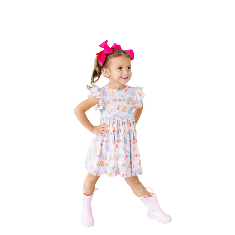 Rainy Day Flutter Sleeve Twirl Dress 6-12M