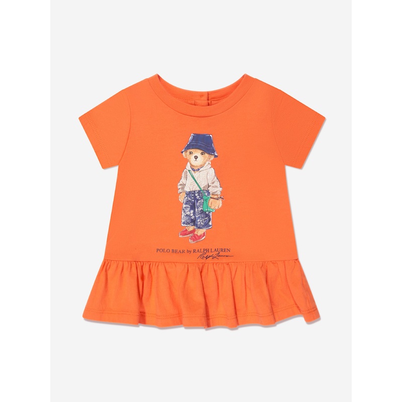 Ralph Lauren deliver unapologetic luxury and exquisite detailing in their aesthetics. This baby girls cotton jersey dress in orange amplifies the American label’s spellbinding craftsmanship and strong visual imagery. Made in soft cotton with a teddy bear print, back button fastening, crew neck and peplum hem. She will look and feel fabulous.