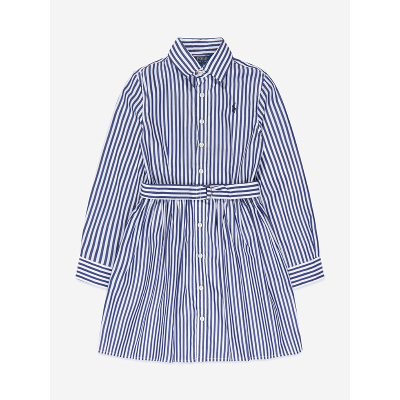 Introducing the Ralph Lauren Girls Blue Striped Cotton Shirt Dress, a stylish and versatile choice for your little fashionista. This dress is perfect for any occasion, whether it's a family gathering or a casual day out. Key features include: Made in Great