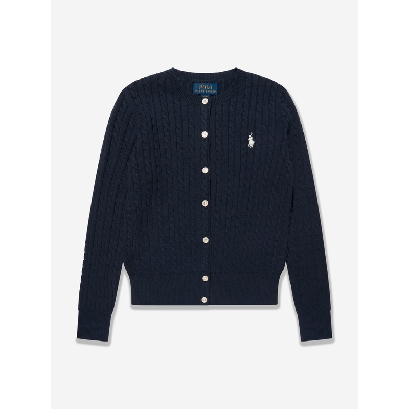Ralph Lauren revitalise classic contemporary fits to suit modernised lifestyles. This girls cotton navy cardigan captures the American spirit and the brand's excellent craftsmanship. Made with ribbed trims, a button fastening and embroidered polo player lo