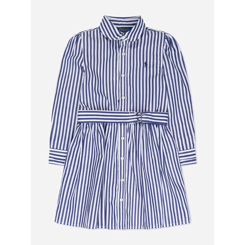 Ralph Lauren reconceptualise traditional archives into modernised feminine portraits. This girls navy shirt dress has been depicted with a with a tape belt and delicate flared hem. Features pearlescent buttons, a shirt collar and the iconic embroidered pol