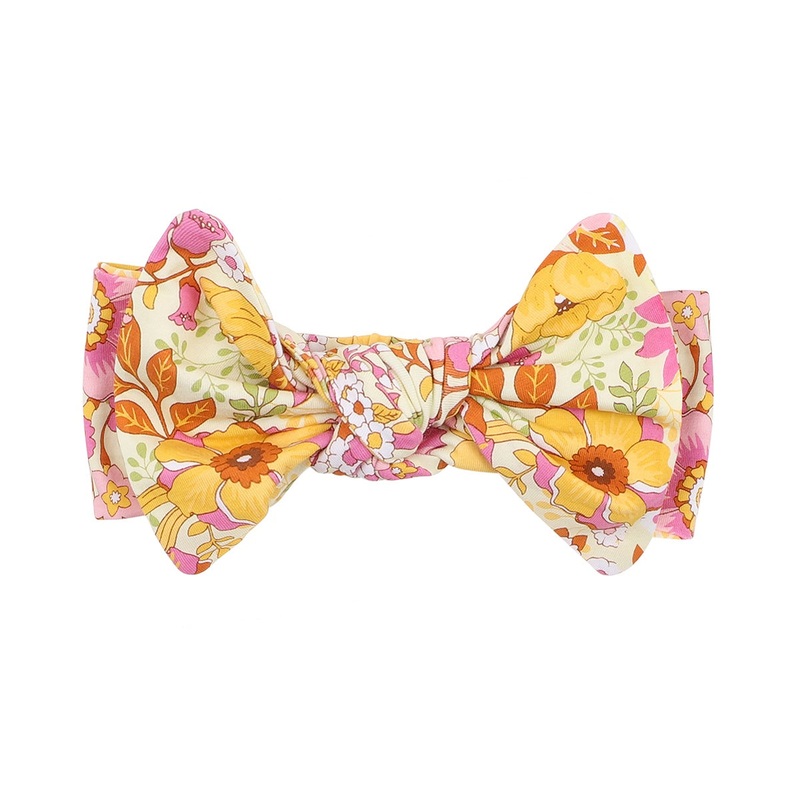 This adorable headband in a bold retro floral print is finished with a big knot bow, elastic back for comfort and a velcro opening, complimenting any outfit. Australian owned and designed. Made in China.95% COTTON 5% ELASTANE JERSEY Machine washable See ca