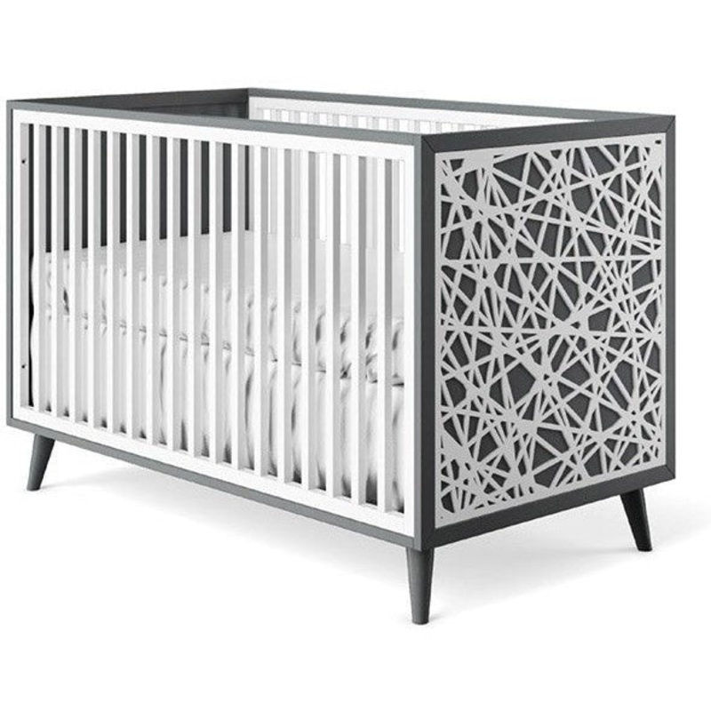 New York Crib is designed about the busy big city lifestyle, fit for small spaces with big ideas, contemporary in style with mid-century essence. The crib converts to Day bed and Toddler bed and has three mattress settings to maximize convenience. The Toddler rail can be purchase separately. The crib is available in one general finish, 2-tone (over 50 base options) or upgraded with Laser-cut panels or Eco-Leather inlays.