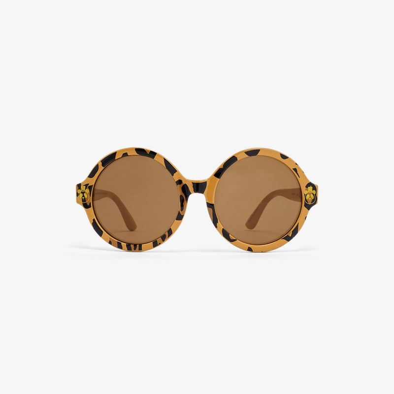 Round 70s inspired sunglasses with an all over Leopard print made from 100 % recycled fishing nets. The sunglasses feature a Mini Rodini logo and Panda print on the frame. Featuring polarized lenses with an anti-scratch coating and 100 % UVA/UVB protection. The width of the frame is 13,2 cm and the length of the temples is 12,3 cm. The recommended age for the sunglasses is between 5-10 years old but may vary.