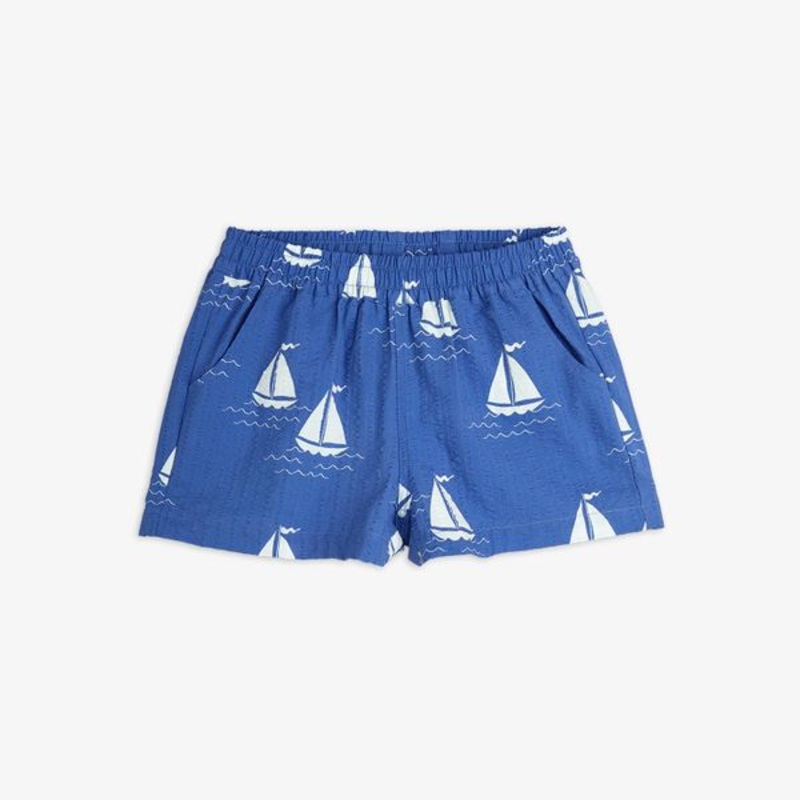 Woven short made of 100 % GOTS-Certified organic cotton. Designed in all over Sailing boats print with a hidden drawstring and two front pockets. All over sailing boats print Hidden drawstring Two front pocketsMaterial 100 % Organic Cotton GOTS certifiedTh