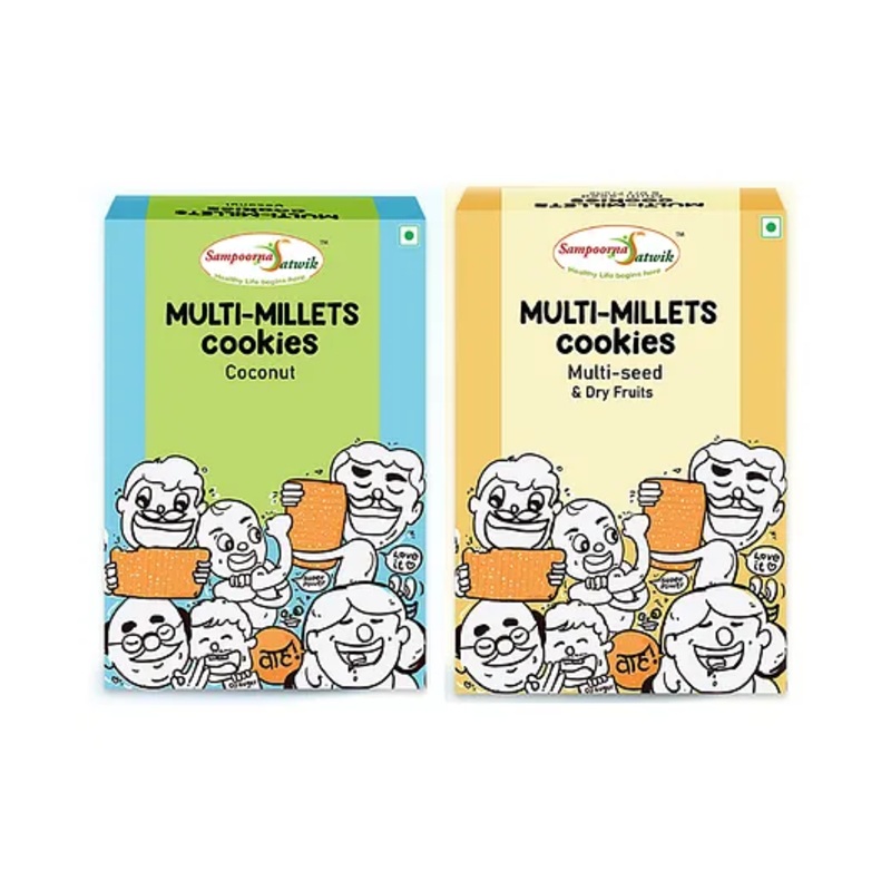 After serving thousands of new mom for their baby food, sampoorna satwik has come with healthy and nutritious cookies for little ones to all. Power snacking anytime, anywhere without any guilt.These Cookies are made from A1 quality ancient superfood such as Ragi, jowar, bajara, whole wheat grain, dryfruits, seeds which are powerhouse of iron, calcium and protein. Cookies are made in base of pure desi cow ghee which is rich source of Vitamins, Antioxidants and Healthy Fats and Organic jaggery is Iron rich & chemical free Natural sweetener instead of palm oil, margarine and sugar which often used while making cookies. It is also a best gift option.