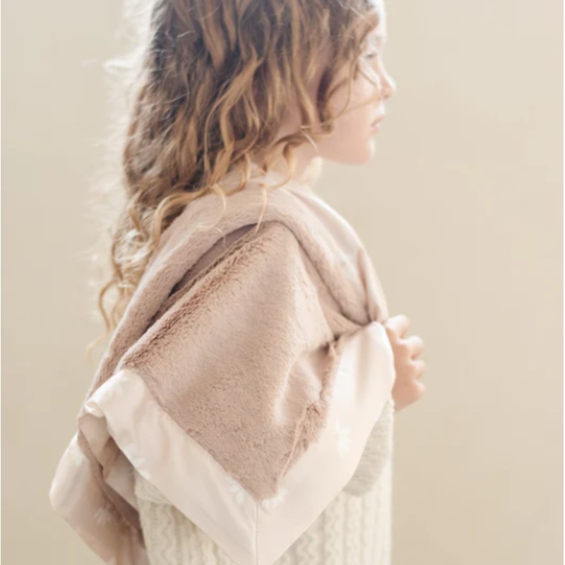 Satin Back - For satin lovers! One side of this blanket features one side of lush faux fur fabric, while the other side is silky-smooth satin!Satin Back Receiving - Babies grow so quickly, and our receiving sized blanket is the perfect blanket to grow with