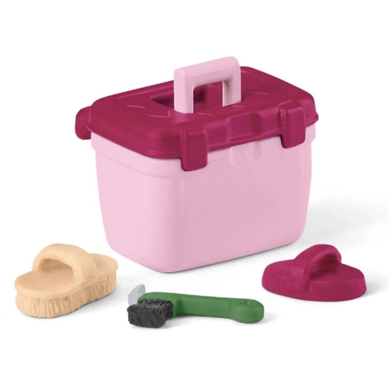 The Schleich Horse Club horse show grooming accessories help Sophia to get her horse clean for its appearance at the big horse show. The new cleaning box, in colours matching her outfit, contains a practical hoof pick, a curry comb and a soft brush. Sophia