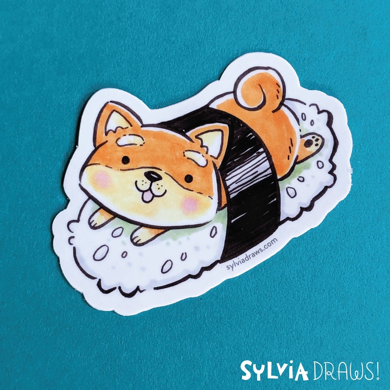 Love dogs? Love sushi? Love sushi and dogs! This is the perfect sticker for you! Great for fans of Japanese cuisine and little doges, this adorable vinyl sticker brings a smile to anyone who sees it! Measures 3.125" long and 2.25" tall. Matte finish vinyl.