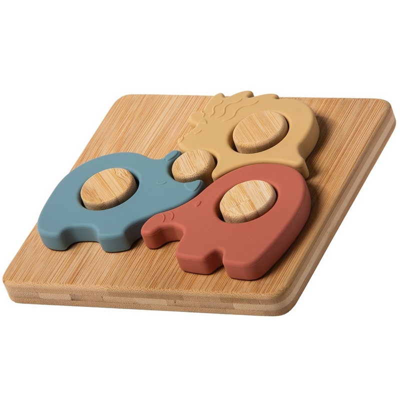 Help your little one grow and explore with the Simply Silicone Bamboo Safari Puzzle. This first puzzle combines three soft, food-grade silicone animal shapes with a smooth bamboo tray, all in soothing, subtle colors. It encourages early problem-solving, fi