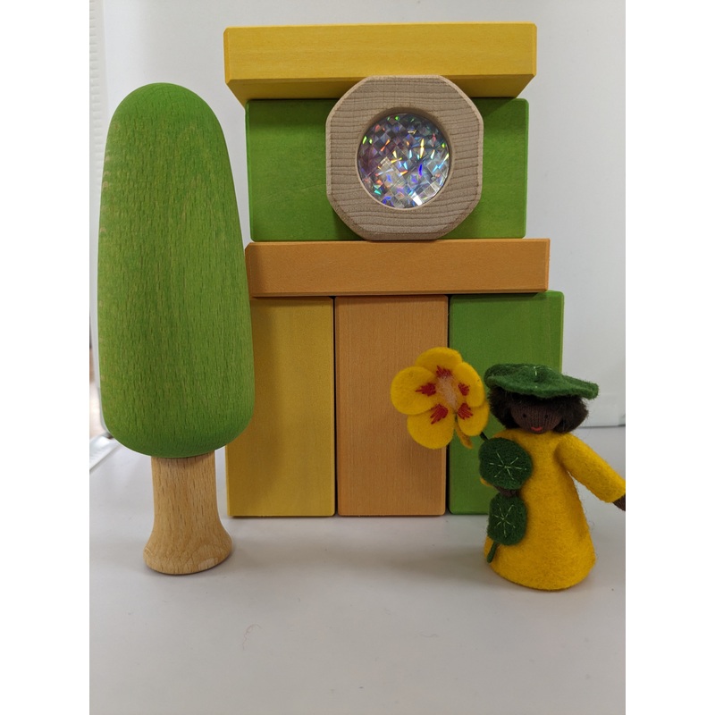 Our exclusive Small World Curiosity Sets feature items from some of our most beloved brands to spark imagination and creative play. This set includes three Ocamora bosques, tablitas and prisms, Papoose rainbow bitcoin and an Ambrosius Fairy Nasturtium Prince